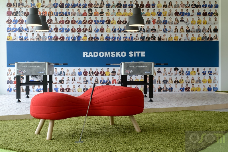 Projekt i wykonanie strefy wypoczynku w miejscu jadalni pierwotnie przeznaczonej dla 200 osób. Celem było stworzenie miejsca zachęcającego do integracji i utożsamiającego pracowników z fabryką. Na potrzeby realizacji tego wnętrza przeprowadzona została sesja fotograficzna z udziałem wszystkich działów, zarówno biurowych jak i produkcji. Zdjęcia zostały następnie wykorzystane do wykonania plansz z mozaiką montowanych na ścianach. Wielka i mało przyjazna przestrzeń jadalni została zredukowana.